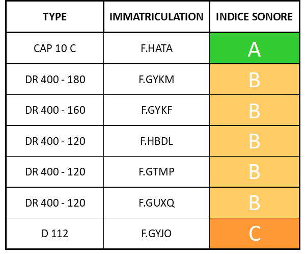 (CALIPSO: Classement des Appareils Légers selon leur Indice de Performance SOnore)